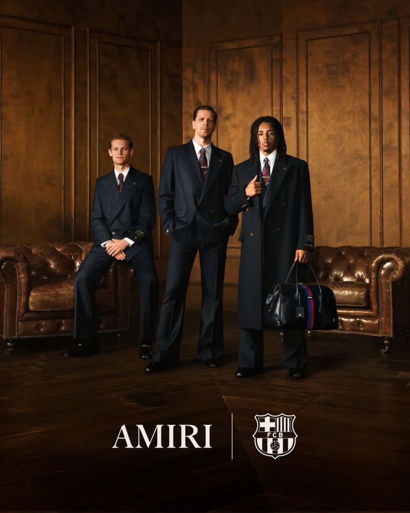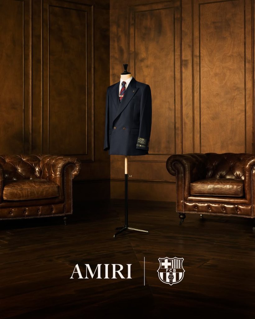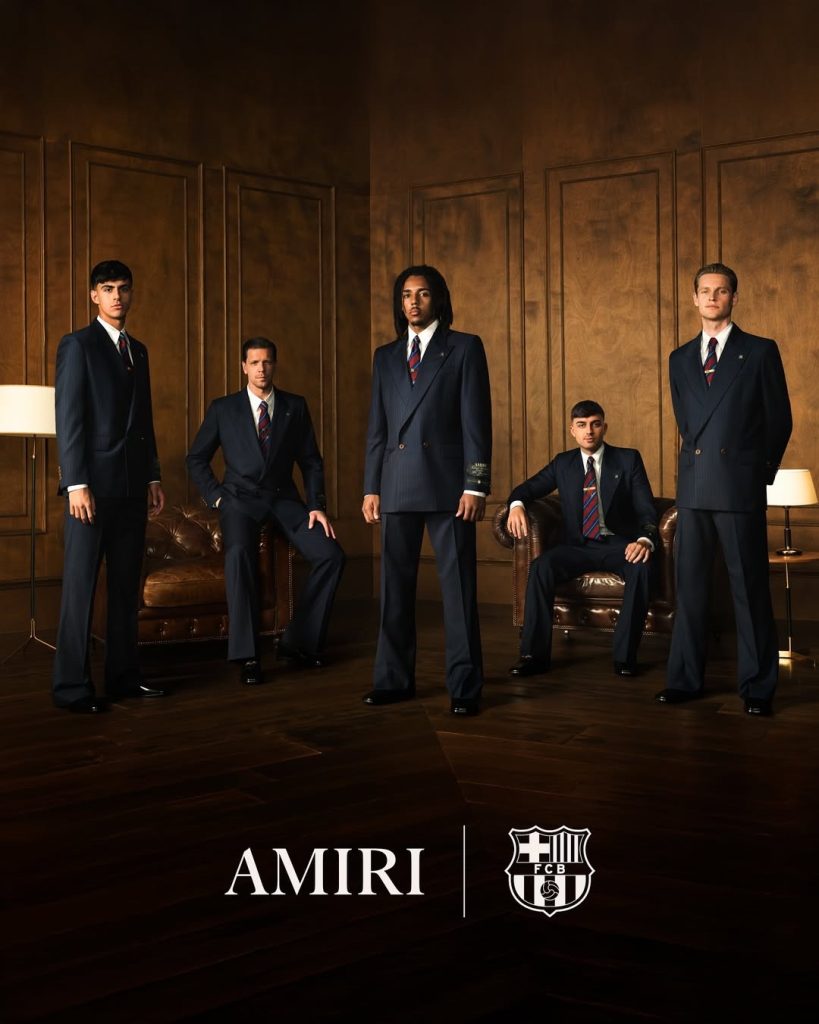 The AMIRI FC Barcelona partnership marks the first time the Spanish club has designated an official formalwear collaborator, bringing American luxury aesthetics to one of Europe’s most decorated football teams.