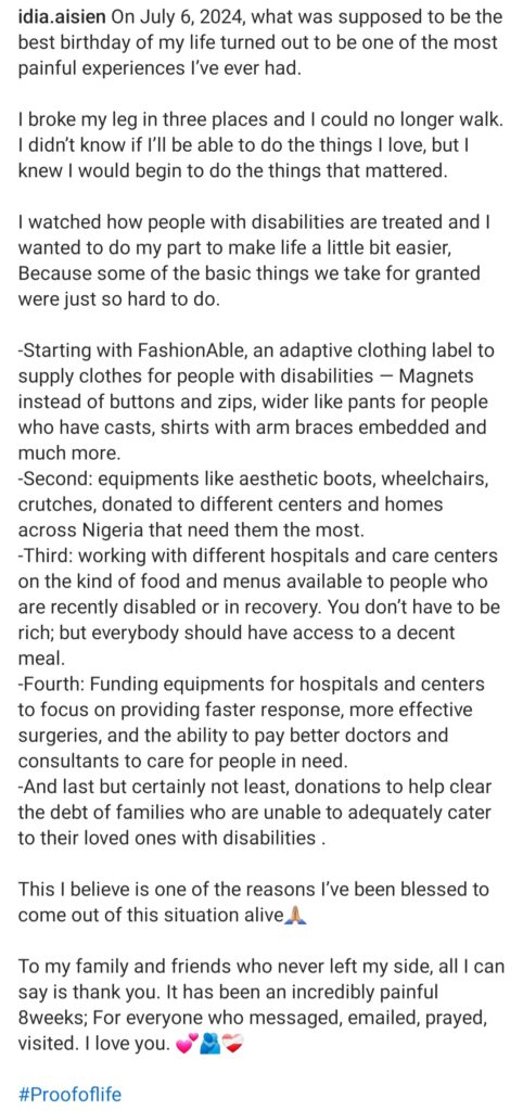 Reflecting on the ordeal, Aisien shared that the experience has given her a new understanding and empathy for people living with disabilities.