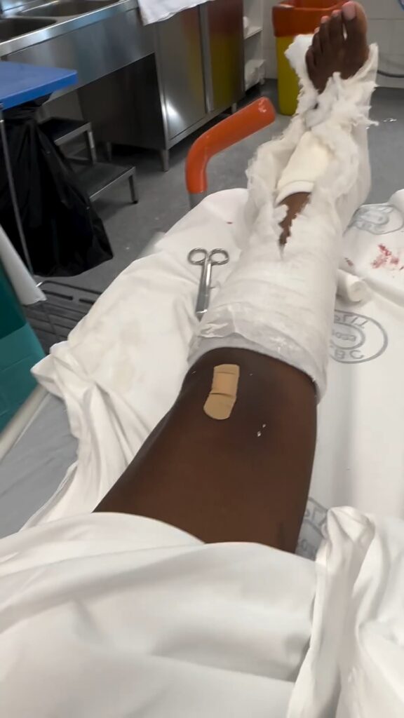 While on vacation, Aisien suffered a severe accident that broke her leg in three places, resulting in her being hospitalized for weeks. The injuries have left her temporarily unable to walk.
