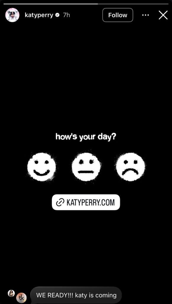 Pop superstar Katy Perry has prompted fan speculation about an unannounced project with a cryptic social media message. Perry simply posted the phrase “how’s your day?” which many are interpreting as the first lyric or title tease for new music.